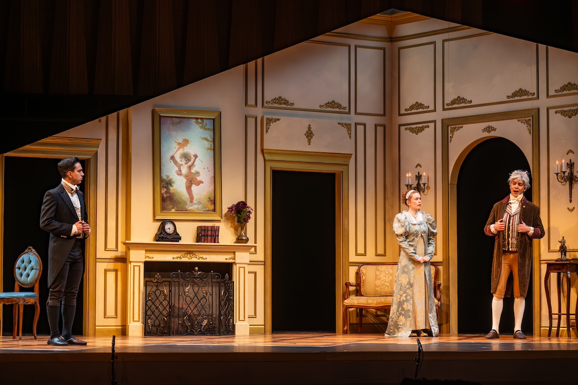 La cambiale di matrimonio (The Wedding Contract) is a one act screwball comedy (technically a farsa). It has all the plot elements that see will see over and over in later Rossini comedies; cunning servants, an old man trying to make money out of a marriage, young lovers facing obstacles etc. The plot eemnts are mirrored by the music; patter songs, breakneck ensembles and an impossibly florid soprano aria, inter alia. In this case they are used in the service of a plot that features a cash strapped English merchant who is trying to marry his daughter off to a rich Canadian who is seeking a suitable bride but she’s in love with a far less wealthy young man. Everyone.seems to want to kill the Canadian butb he’s fundamentally a nice chap (of course) and he engineers a happy ending