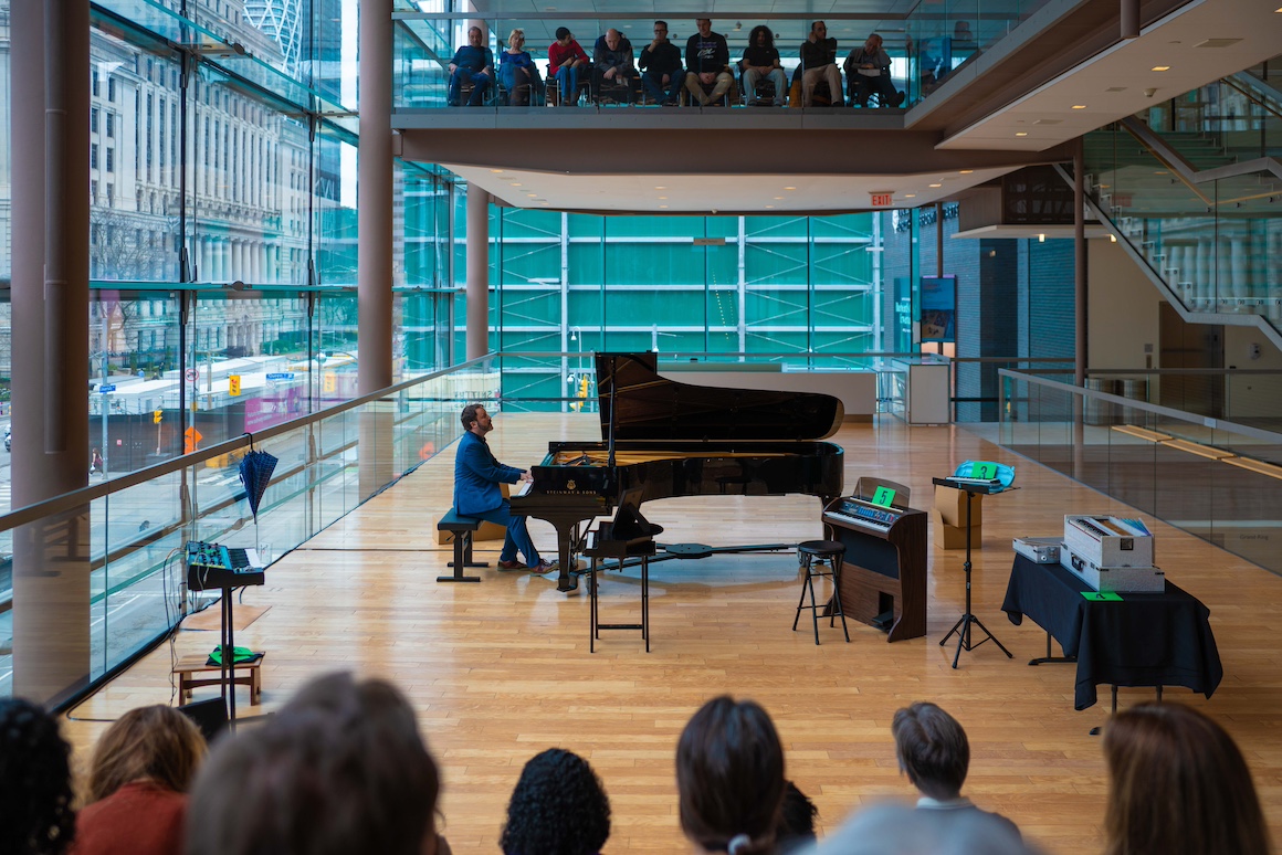Canuck Cantatas is the first live show from Against the Grain Theatre since, I think, 2023. It’s good to see what was once a staple of the Toronto indy scene in action again. This show is three short monodramas. Each features a soprano singer who is also either composer or librettist and all are based around the story of one, Canadian, character. The accompanying ensemble consisted of piano (Spencer Kryzanowski), string trio (Julia Mirzoev, Russell Iceberg, Peter Eom) and bass clarinet (Brad Cherwin). Since the show was at the Redwood everybody was miked and amplified with speakers all around the performance space which was an interesting effect.