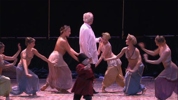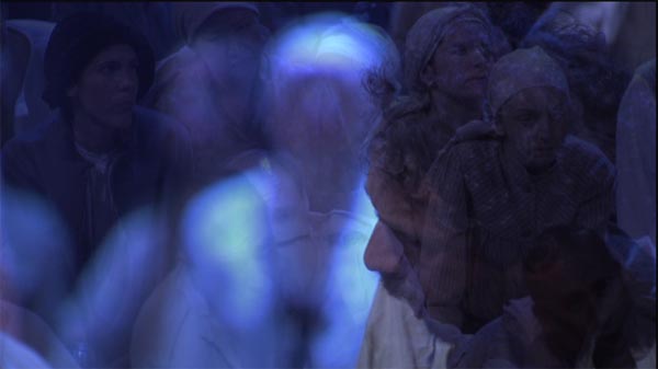Surprisingly the video direction for Barcelona isn’t a huge improvement on Vienna. Angel Luis Ramirez does manage to stay back from the action more than Brian Large but he gets rushes of blood to the head in the big choruses in both Acts 3 and 5. In both cases there is a very full stage and a picture carefully composed by the director. In both cases Ramirez keeps cutting back and forward between wide shots and completely irrelevant close ups with a full arsenal of fades, dissolves and superpositions (see the third screen cap above). The farcical drunken chorus of the Streltsy in Act 3 can almost survive the treatment but it does much to undermine the deliberate simplicity of the final suicide.