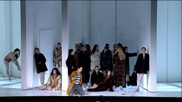 For a start there’s nothing giocoso about this dramma. It’s a very bleak and complex production with lots of ideas; some of which work and some of which are more problematic, and it’s provoked more discussion at the Kitten Kondo than just about any other recording we’ve watched recently.  Rather than write a 3000 word review I’m going to write a normal length review and follow it up with one or more posts on aspects of the production that seem particularly worth exploring.
