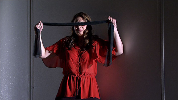 Somehow the blindfold finds its way from Donna Elvira to Donna Anna in the scene where Leporello is exposed as a fraud but nothing much happens with it until Donna Elvira picks it up again at Mi tradì. Now we are back in self delusion/submission territory up to a point but we also get at ouch of the kind of “holy relic” treatment we saw from Don Ottavio in Act 1. It’s as if she’s trying to make the scarf a symbol of a “love” she’s put behind her but can’t quite manage it.