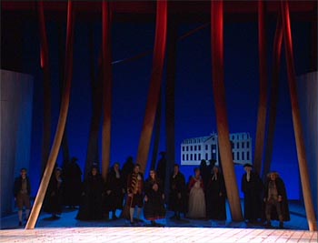 The DVD doesn’t do anyone any favours. The Dolby 5.1 sound is very thin at the top end which makes the violins and the sopranos sound a bit hollow and squeaky. To make matters worse the singer/orchestra balance, pretty decent for the most part, goes strangely awry for part of Act 3. The Dolby 2.0 track is even worse. The picture is OK DVD 4:3 though it gets faked out by some cruel horizontal lines in Act 1. Derek Bailey is the video director and gives a 1990’s TV picture with lots of close-ups. He’s not too self indulgent except maybe in the last act where some weird camera angles and strange choice of shot make the already confusing plot very hard to follow. There are no extras to speak of and subtitles are limited to English, French and German.