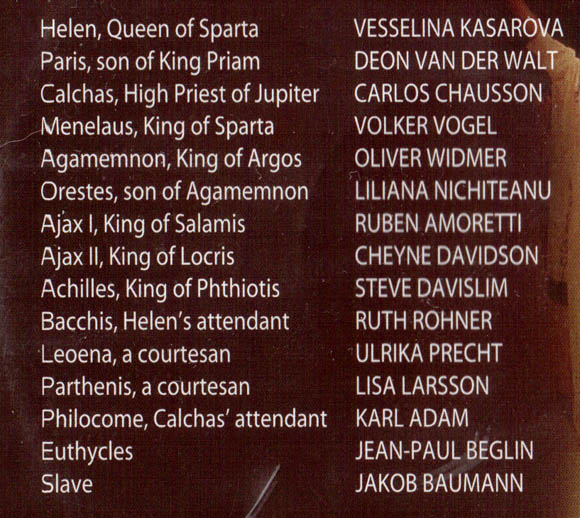The singing and acting is terrific. Vesselina Kasarova is Helène and she manages the required vocal pyrotechnics with ease, indeed with control and some finesse. She also acts well and despite perhaps not being “the most beautiful woman in the world” she’s close enough for the idea to work. She’s very ably supported by Deon van der Walt as Paris and Carlos Chausson as a rather campy Calchas. There’s an engaging performance too by Liliana Nichiteanu as the philandering Orestes. It’s a big cast and everybody makes their contribution. Full listing follows…