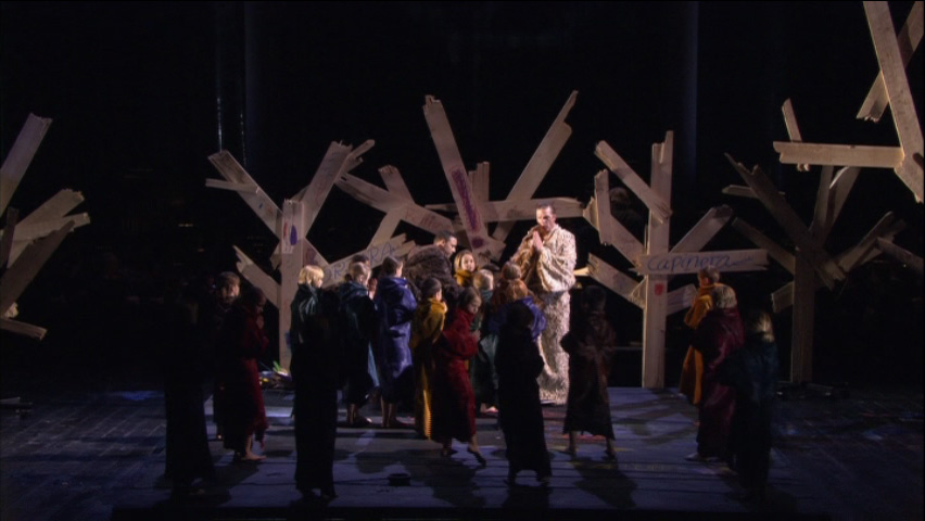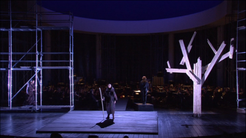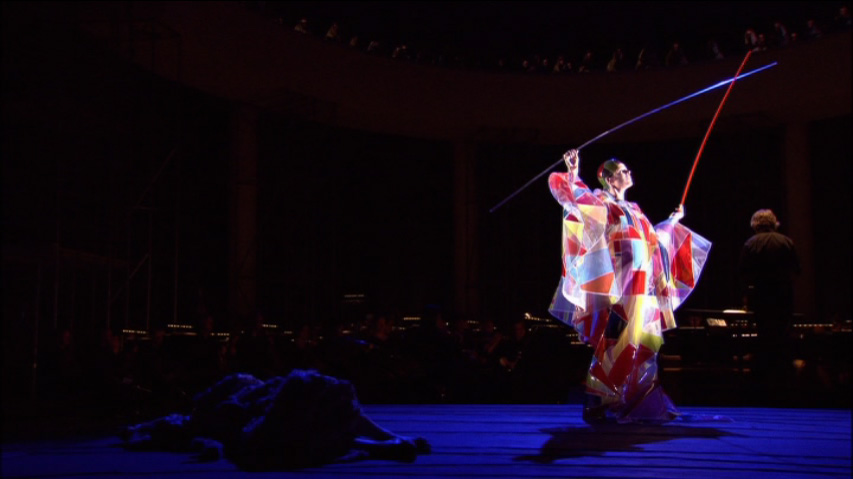 The videodirection is by Misjel Vermeiren is interesting and, I think, ultimately succesful. He uses a very wide variety of camera angles, including directly above the action, but it seems to work. The total stage set is vast and when he does show it all it shows up the limitations of even a good DVD picture. On balance I think his choice of angles and depths is judicious.