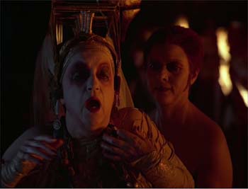 OK, I have shamelessly stolen the title of this post from the DVD booklet because it’s just a perfect description of Götz Friedrich’s 1981 film version of Strauss’ Elektra. It’s one of those lip-synched films where the soundtrack is recorded in the studio and then the filming is synched to the sound track. Mercifully the singers are also the actors. I hate it when they use body doubles.