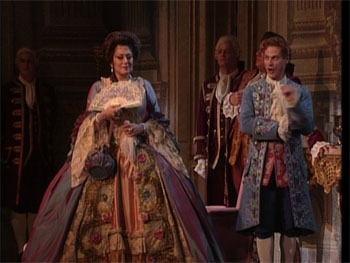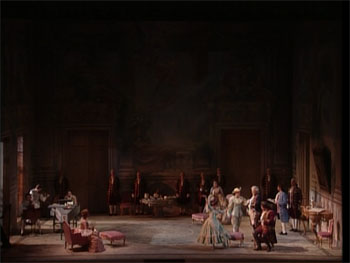 The 1993 San Francisco Opera production of Strauss’ Capriccio is about as literal a take on the work as one could imagine. Stephen Lawless’ production sticks to the stage directions as laid down with an almost fetishistic fidelity. This is backed up by highly decorated costumes and sets firmly placed in a slightly over elaborated 1775. The traditionalists dream? I suppose so if one thinks that Strauss and Krauss meant the work to be taken literally. I don’t. This is an opera about an opera about opera. It begs to be deconstructed and the time and circumstances of its composition tend to reinforce the idea that all is not as it seems. To take it at face value is actually a bit absurd but that’s what happens here and the result is rather dull and unsatisfying.