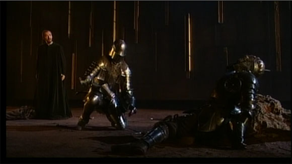 Monteverdi’s Il combattimento di Tancredi e Clorinda must be, at twenty two minutes, one of the shortest operas around. In typical Monterverdi style though it crams a lot of music and emotion into a very short space. Based on a story by Torquato Tasso, it concerns a Christian knight, Tancredi, and a Moorish princess, Clorinda. Somehow they have managed to fall in love but are still fighting on opposite sides They meet on the battlefield but as each has their visor down they don’t recognize each other. They fight a long and bloody single combat in which Tancredi mortally wounds Clorinda. When their helmets are removed they recognize each other and Clorinda asks Tancredi to baptize her so they can be united in heaven. It’s pretty dodgy theology but great theatre.
