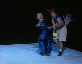 The Gramophone Guide describes the 1992 Ludwigsburg Festival production of Die Zauberflöte as a “life-enhancing experience” so I thought I’d take a look. I think the folks at The Gramphone Guide are rather over-egging it but it is a pretty decent production. It’s very much geared to Ludwigsburg’s small stage and limited scenery handling capacity but it makes good use of the space and clever lighting, including a willingness to black out the stage, and some deft stage craft make up for the limitations.