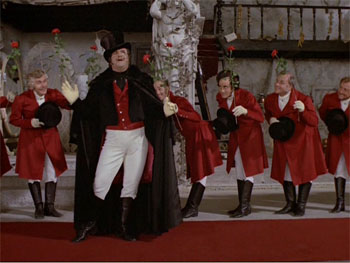 The comedians; Margherita Guglielmo as Clorinda, Laura Zannini as Tisbe, Paolo Montarsolo as Don Magnifico and, above all, Claudio Desderi as Dandini are all very good.  they sing stylishly when needed and comically when required.  They are all excellent comic actors too well able to manage the broad farce in the comic sections that Ponnelle seems to want.  The gentlemen of the La Scala chorus are also excellent.  Presumably this production could afford the acting premium because they do plenty and they do it well.  Claudio Abbado conducts and does fine but I’m not so sure about the orchestra.  The strings sound quite shrill at the top end but whether this is the orchestra, the acoustic or the recording I really can’t tell.