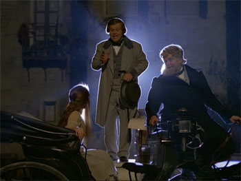 The action all, I think, takes place on the La Scala stage but without an audience.  There are painted flats and screens and obviously ‘stagey’ things happen.  That said, I don’t think Ponnelle is at all giving us the performance he would give a stage audience.  He is directing for the camera and stage actions and camera work are co-ordinated to great effect.  There are trademark Ponnelle elements to the cinematography; slow zoom outs, faces shot from a high angle, pop ups and quite a range of other camera tricks.  But, as his wont, there is no suggestion of naturalism. The stage effects are stagey and the comic acting is broad; sometimes very broad.