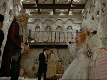 There’s been a fair amount of discussion of Jean-Pierre Ponnelle’s film version of Mozart’s La Clemenza di Tito over at The Earworm so I thought it would be a good time to dig out his La Scala production of Rossini’s La Cenerentola.  They have a lot in common; an obsession with statuary and heavy focus on verticality that makes the picture often seem taller than it is wide are just two.  The Rossini, despite being filmed at La Scala is very filmic.  It’s much more like a movie than a video recording of a staged performance.