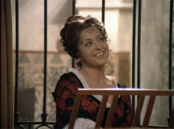 The performances are very good, if not especially idiomatic.  Prey is a smiling, bouncy Figaro who sings accurately but doesn’t sound terribly Italian.  Luigi Alva, on the other hand, is a very Italian sounding Almaviva.  I enjoyed his singing but many, I think, will find his old fashioned ornamentation a bit heavy handed.  Teresa Berganza is a very photogenic Rosina who plays the part more as flirt than minx. One really sees this in una voce poco fa which is not very ironic, in fact rather sweet.  Maybe, also, she’s on the mature side for Rosina but less obviously so than María Bayo on the Madrid recording.  Enzo Dara’s Bartolo and Paolo Montarsolo’s Basilio are clowned up to suit Ponnelle’s direction but sing well enough.  Claudio Abbado conducts idiomatically and the La Scala orchestra and chorus are perfectly adequate.