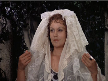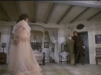 Te Kanawa’s countess doesn’t project any great individuality beyond the stereotypical put upon wife although she does manage to generate a sense of both teasing and of being afraid in Act 4. Before that we get a lot of religious symbolism and some gorgeous singing of the two big arias. Porgi amor is trademark Kiri with the emphasis on beauty of tone rather than meaning though Dove sono, accompanied in part by black and white flashbacks, is a bit more animated.