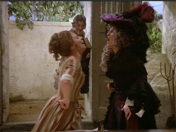 The cinematography shows more elements of Ponelle’s later work than his Madama Butterfly. There is a lot of mugging to the camera and quite a bit of the camera circling the action as well as some odd angles and fast cuts. There are some flash back sequences and freeze frames so it’s still more cinematic than the later films and it doesn’t have the contrived staginess of La Cenerentola. As in Butterfly, interior monologues are not lip synched. It does have the sense of being filmed for the small screen (reinforced by a short interview in the booklet) and the picture is 1970s film to TV quality; 4:3 aspect ratio and rather soft focussed so stressed a bit on a modern large screen.