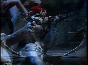 The biggest problem with this disk is Russell’s direction for video. It’s really self indulgent with heavy reliance on kaleidoscope effects and superpositions. Even when we do get the unadulterated stage picture Russell tends to focus in on something or someone while other characters or, more often, his dancers flit in and out of shot. It’s a bit of a pet peeve of mine but if a director is going to include quite complex choreography we, the viewers, should get a decent look at it. None of this is helped by a picture that shows all too clearly that it was shot for 1980s TV. When we do see the whole stage there’s so little detail in the picture it’s painful. I have the very strong impression that what the theatre audience saw was way more interesting than the video suggests. Certainly their extremely vociferous applause and general hollering suggests so. The disk has English, French, German, Spanish, talian and Chinese subtitles and a few trailers. The documentationis a track listing, synopsis (generic, not of this production) and a short essay.