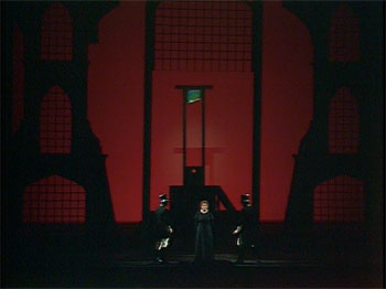 Musically it’s pretty solidly good news. Francisco Araiza is a really strong Faust. He sings well, he acts well and is French is impeccable. It’s much the best performance I’ve seen from him. Ruggero Raimondi is a commanding and swaggering presence as Méphistophélès though his French is a bit approximate. Gabriela Beňačková, as Marguerite, takes a while to get going but she’s in great form by the last act where she is truly affecting. I think the slow start may have more to do with the production not really focussing on her as a character until the end than on any acts of omission or commission on her part. The supporting roles are all more than adequately performed. Erich Binder conducts and makes the most of the big dramatic moments and the famous tunes. Really it’s very good all around and it’s supported by clear and well balanced DTS 5.0 sound (using one of those synthetic DGG processes). Dolby 5.0 and PCM stereo are also available.