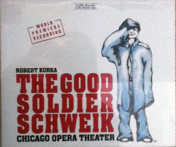 Among the goodies I won from Chicago Opera Theatre in a recent Twitter! contest was a 2001 recording of Robert Kurka’s 1956 opera The Good Soldier Schweik based on the novel by Jaroslav Hašek.  It’s a very interesting piece.  It’s on an odd sort of scale with 26 solo parts, here managed by a team of 12 singers, plus chorus.  It uses a fifteen piece woodwind and brass band with no strings at all.  I’m guessing it could easily be presented in quite a wide range of theatres.