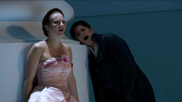 The performances are excellent across the board from both a singing and acting point of view. Catherine Nagelstad’s Vitellia manages not to be bat shit, scenery chewing insane but comes off as devious and quite vicious and credible enough that Susan Graham’s Sesto can be somewhat taken in by her without looking completely daft. Christoph Prégardien’s Tito is conflicted without being sappy (or a bit nuts like Michael Schade’s Salzburg version). The young lovers; Annio (Hannah Esther Minutillo) and Servilia (Ekaterina Siurina) are quite charming and the latter is really touching in her big scene with Tito. Roland Bracht even makes rather more of the potentially rather dull role of Publio than is sometimes the case. It’s quite invidious to single out vocal highlights in such a consistently well sung performance but I have to mention the Servilia/Annio duet Ah perdona al primo affetto. Not only is it some of the most gorgeous music Mozart ever produced but here it’s quite beautifully performed by two young singing actors with great chemistry. In praising the soloists I must not forget to mention the excellent work by conductor Sylvain Camberling and the orchestra and chorus of the Opéra national.