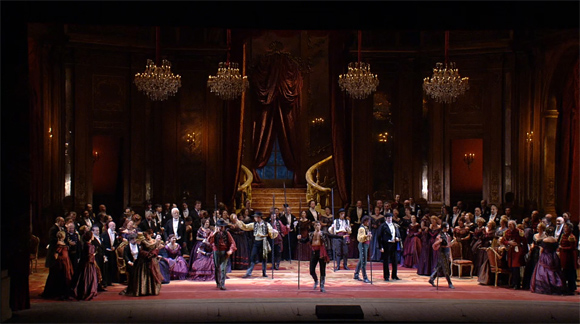 Paola Longabardo directs the video. It’s a conventional enough effort that shows the production off well. It only gets artsy during the orchestral prelude to Act 3 which is fair enough. There are transition sections between the scenes. They are like costume or set design drawings with ornate fonts and fit rather nicely with the production design concept. The picture (on Blu-ray) is top notch 1080i. The sound is pretty full blooded DTS-HD Master Audio and it sounds very good indeed. There’s maybe a slightly thin tone to the strings, especially in Act 1, which may be a recording artefact or may be what the La Scala orchestra sounds like. In any event it stopped bothering me quite quickly. The subtitle options are Italian, English, German, French and Spanish. There’s a synopsis and chapter listing printed actually inside the plastic box. The leaflet is taken up by a catalogue of Arthaus’ other Blu-ray releases.