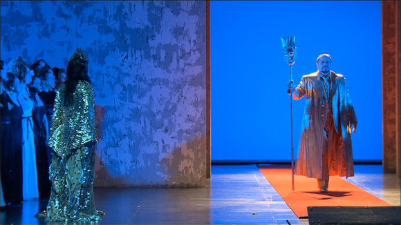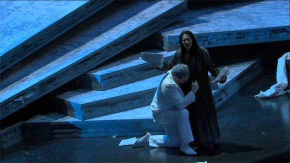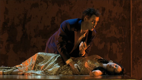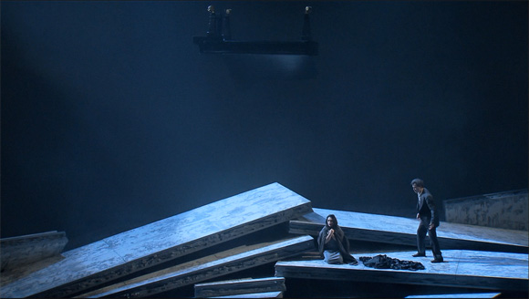 The Blu-ray package can be given an unqualified recommendation. The video direction by Myriam Hoyer is nicely balanced between long shots and close ups and only once does she get artsy. I really felt that I was seeing Harms’ production rather than what the VD thought I should see. Maybe we need more women video directors? The picture is 1080i and does full justice to the lighting plot; no easy feat. The DTS-MA-HD 5.0 sound is clean, spacious and well balanced lacking only the final clarity of uncompressed surround sound. The PCM stereo track is pretty good too (I watched the first two acts at an ungodly hour with cans on). There is a good synopsis on the disk and an OK “Behind the Scenes” feature showing mostly footage of a public rehearsal. The documentation has a chapter listing, a synopsis and an essay on the work’s history and impact. There are English, French, German, Italian, Spanish and Korean subtitles.