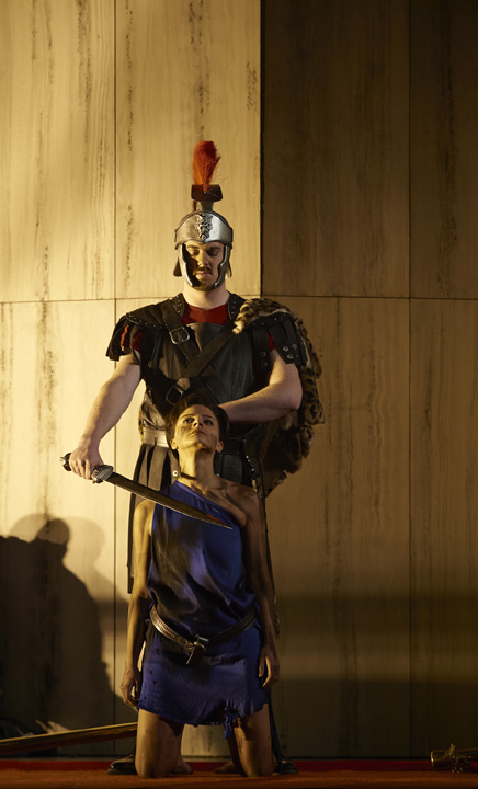 12-13-E-04-MC-D-1391Rihab Chaieb’s Sesto was also very good indeed.  It’s a long and difficult role and Rihab rose to all the challenges both dramatically and vocally.  It’s definitely the best thing I’ve seen her do.  Tito was split between Chris Enns (Act 1 with hair) and Owen McAusland (Act 2, less hair).  Chris just keeps getting better and he showed total command of the part last night.  Owen was equally good and perhaps even more lyrical.  He has a gorgeous voice which should take him far.  Neil Craighead was pretty much ideal as Publio.  he doesn’t have the big numbers but he does need to act and make the role more than just a foil for Tito.  He did this with just the right combo of humour and menace.  If they remake Life of Brian he should be a shoe in.