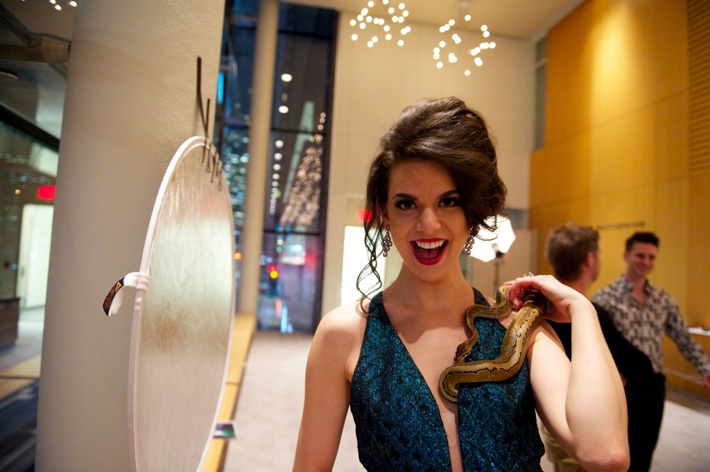 Ambur Braid and her python co-star in the Four Seasons Centre for Performing Arts (photo: Ryan Emberley)
