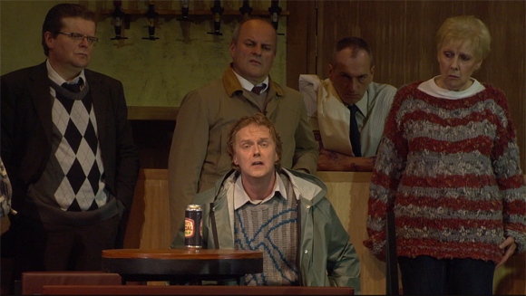 Central to any production of Grimes is the man himself. Here he’s played by John Graham-Hall who is new to me. He is a lyrical singer in the Pears/Langridge manner, rather than the Heldentenor so often employed nowadays. He can do the lyrical part as he shows in the big arias but in between he tends to drop into something closer to speech than singing. Whether this was his decision or Jones’ I can’t say but it didn’t work for me. His characterization is decent though. He presents a dreamy Grimes, much in the Pears mould, maybe even more so, which makes the violent side of Grimes that bit more incongruous. Ellen Orford is sung by Susan Gritton and it’s a very committed performance but I just can’t like her voice. It’s got a shrill quality that just doesn’t work for this character. One longs for the security and sweetness of tone of Heather Harper or Patricia Racette.
