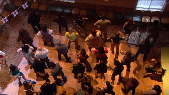 Richard Jones has chosen to set the piece in the 1980s and to portray the inhabitants of the Borough as a sort of inbred hive mind fuelled by prejudice, alcohol and drugs. Actually it’s not a bad concept but it comes off as exaggerated with cast and chorus repeatedly making more or less coordinated middle aged disco moves. He also portrays the nieces as the sort of permanently stoned bubble heads one wants to avoid on the last train home. There are some neat touches. The Moot Hall, The Boar and Grimes’ hut are all formed by box like spaces that are tilted and rotated to good effect. The lighting is effective too. Unusually for a modern production Jones doesn’t provide any staging for the interludes, leaving the theatre dark with the curtain down. Overall, it’s a production I’d want to take a second look at but I suspect it’s just painted too broadly to be really effective.