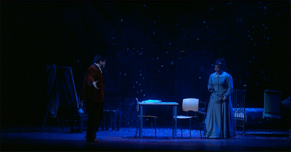 There are a series of very short interviews on the disk which are worth watching. The key one, which lasts scarcely two minutes, is with the director. He makes two claims. “Rodolfo reanimates the dead Mimi as we must reanimate opera” and “We use opera to escape reality”. These ideas are brilliantly explored in this production.
