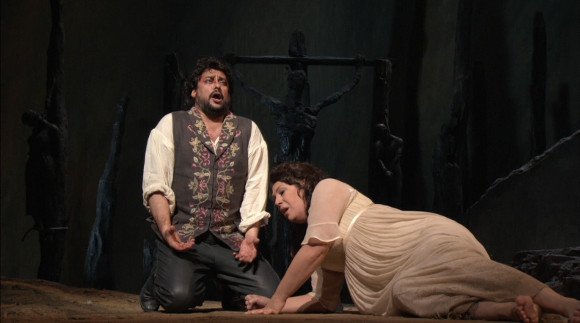 Verdi’s Il Trovatore really is a peculiar piece. It’s a bit of a musical hybrid with huge, rousing choruses interspersed with bel canto arias which I suppose is fairly typical of middle period Verdi. It has a truly silly plot (perhaps based on Blackadder’s lost novel) with gypsies, dead babies and improbable coincidences galore. It’s also notoriously hard to cast with five very demanding roles combining a need for flawless bel canto technique with lots of power. David McVicar’s production at the Metropolitan Opera was broadcast in HD in April 2011 and subsequently released on Blu-ray and DVD. I saw the HD broadcast and enjoyed it enough to buy the Blu-ray.
