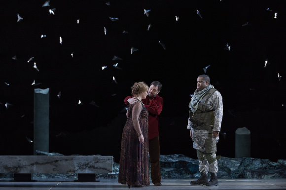 Hercules1aHercules isn’t Handel’s best known oratorio and it doesn’t have the most felicitous libretto or the most hummable tunes but, as Sellars has recognised, in its roots in Sophocles’ Women of Trachis it has a universality that speaks to us down the ages.  It’s about the damage done to those who go to war and those who wait at home for them.  It doesn’t much matter whether the war is at Troy or in Afghanistan or, as here, Oechalia.  This is emphasised in the production by a sort of temporal ambiguity.  The costumes are a mix of modern combat fatigues and clothes that could be almost anywhere, anytime.