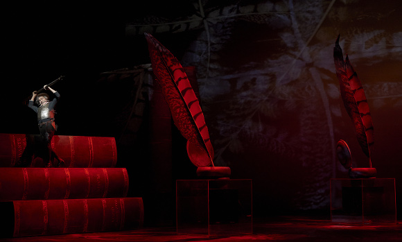 To be fair, the production did have some things going for it. The sets; made up of giant books and writing instruments, were interesting (though they caused long and noisy set changes) and projections were used effectively, especially in the battle with the giants, which was otherwise confused and pointless. The flamenco dancers were pretty decent and injected some genuine energy even if their choreography veered towards the “rose in the teeth” flamenco-for-tourists style.