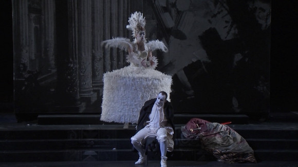 Musical values are very high. First mention should go to the band; the always excellent Concerto Köln directed from the keyboard by Diego Fasolis. They make a very strong case for the score playing in an idiomatic and extremely dramatic way. The singing is mostly very fine too. Philippe Jaroussky may be the best of the lot in the challenging title role but he’s very well supported by Max Emanuel Cencic as his sister Mandane especially in her big revenge number. Franco Fagioli is appealing as the unjustly accused Arbace and Valer Barner-Sabadus is quite lyrical as his sister Semira. The baddies aren’t quite as impressive. Yury Mynenko is probably the weakest of the countertenors in the comparativly small part of Megabise but he does OK in his one big aria. tenor Juan Sancho is the arch villain Artabano and has a lot to do. I think maybe he just has too much to do and by the end his upper register sounds pinched and strained. That said there is a lot of beautifully controlled and dramatic baroque vocalism going on across the board.