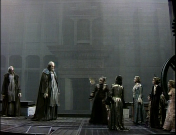 Nibelheim, unsurprisingly is also quite industrial. The Tarnhelm scene is quite cute though why Large takes the camera off Alberich during the first transformation is a bit of a mystery. It’s here we see the best of Heinz Zednik’s very fine Loge. He pretty much steals the show whenever he appears. He’s arch and insinuating without distorting the music. I think Large interpolates some non theatre footage during the ascent back to the surface and there’s really too much smoke. The final scene plays out in much the same way as the rest. There’s nothing particularly special about the Rainbow Bridge or Valhalla but it’s all serviceable enough.