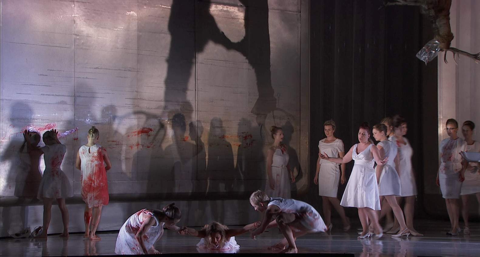 Acts 4 and 5 move us reasonably quickly to a conclusion. Neptune appears to drown Hippolytus. Phaedra commits suicide in remorse but not before confessing to Theseus who is now the remorseful one. This takes us to the final scene set in a morgue. Aricia, alive, is on a gurney. So is a blindfolded Theseus. Hippolytus, dead or alive, is wheeled in. Diana reunites them. Phadra, with obviously cut throat, appears. Theseus and a dancer who flaunts her bare breasts taunt Phaedra. Hippolytus and Aricia sing the “happy ever after” duet but somehow the music can’t quite rise to the drama and it all ends a bit tamely. There’s also a rustic dance with musettes that made me want to hear Treulich geführt played on the bagpipes.