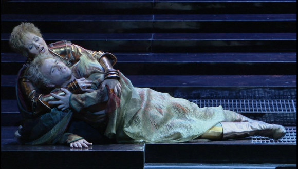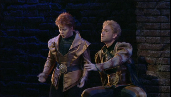 The principal performances are really very good. Ms. Fleming displays her trademark beauty of tone and flawless technique but she also acts rather more than I’ve ever seen her do. Maybe being the baddy brings out qualities we don’t often get to see? Her son, Gennaro, is sung by Michael Fabiano. He’s a very exciting singer and actor, as he showed in Toronto last year as Rodolfo. He’s got great technique and a genuine ringing Italianate tenor. He’s also tall and good looking and can act so is pretty much ideal as Gennaro, Venetian soldier of fortune who doesn’t realize until it’s too late that he’s a Borgia. Gennaro’s sidekick and Lucrezia’s bitter enemy, Maffio Orsini, is sung by Liz DeShong. It’s the first time I’ve seen her in a trouser role and, while she’s not your tall, elegant von Otter or Ernman type mezzo, she’s very good. She sings well and uses the height difference between her and Fabiano to make a point or two. She does a pretty good line in swagger too. The principals are rounded out by Vitalij Kowaljow as Duke Alfonso, Lucrezia’s current husband. It’s a perfectly sound portrayal of the the bluff, looming menace of the piece. Riccardo Frizza conducts and he makes the orchestra sound pretty good. It’s quite grand at times with some fast tempi in both solo and choral numbers. In some ways the music seems to prefigure Verdi and Frizza seems to bring out that quality.