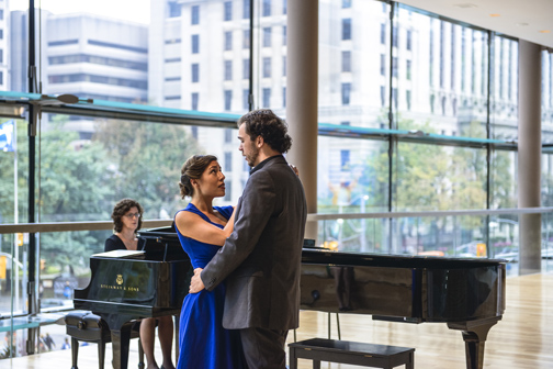 Predictions aside it was fun with a nicely balanced program put together by Michael Albano and Sandra Horst and featuring 17 singers. They started off with an arrangement of Purcell’s setting of “If Music be the Food of Love”. It was pleasant indeed but my attention was immediately drawn to one tenor voice that was obviously a bit special. This turned out to be Charles Sy who returned later to perform the balcony scenes from both Gounod’s Roméo et Juliette and West Side Story with soprano Karine White. These scenes were beautifully done and in the former Sy revealed a genuinely free and easy operatic tenor. Very nice. Ms. White too has a very nice voice and is a very engaging actress who was perhaps more at home in the Bernstein than the Gounod.