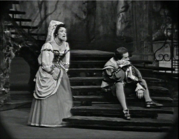 So apart from being redolent with mid 20th century history what’s it like as an opera recording? It’s actually quite fascinating. Unsurprisingly it’s all rather old fashioned by 2014 standards. Sets and costumes are extremely literal and the acting style is quite broad though far from just “stand and deliver”. The story too is told entirely straightforwardly. There’s no ambiguity about what goes on in Donna Anna’s bedroom or anywhere else for that matter. The singing too is not quite what we hear in Mozart today. A good example is afforded by Erika Köth’s Zerlina. She was 36 when this was recorded which is probably older than any Zerlina I’ve ever seen and the voice is quite mature. Also she sings with more vibrato than I’d expect today; but it’s a very tight, fast vibrato. It doesn’t sound like she’s escaped from Puccini but it’s not a sound one would expect Ivor Bolton or Nicholas Harnoncourt to approve of in Mozart. The Don Ottavio, Donald Grobe, sounds like a lieder singer. His attention to the text and his clarity of diction are terrific and he does it while still retaining a sense of line.