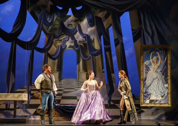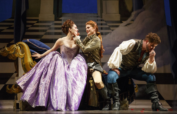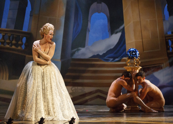 Kresimir Spicer as Oronte, Mireille Asselin as Morgana and Wallis Giunta as Bradamante. Photo by Bruce Zinger.
