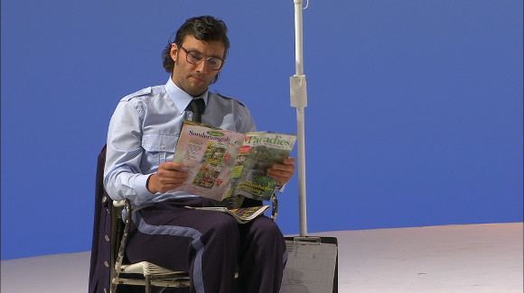 Costuming suggests a 1970s ish setting but it hardly matters. The soldiers look (and frankly act) much more like policemen than soldiers. In fact they are rather a scruffy, disreputable lot. Micaëla clearly knows what kind of “respect” she’s in for when she loses her dress in the opening scene. When we first meet Don José he is bespectacled and reading a gardening magazine (in contrast to Zuniga who is reading Playboy). He’s extremely discomfited when Micaëla tries to kiss him. In fact he’s a complete dweeb. It seems to be the challenge of seducing him that drives Carmen’s interest.