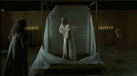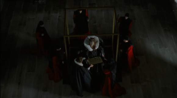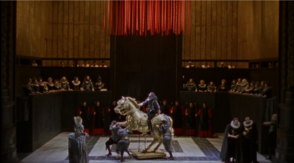 Phyllida Lloyd’s 2000 BBC film of Britten’s Gloriana, based on her production for Opera North, is quite fascinating. The bonus interviews reveal the utter disdain for films/videos of stage opera productions held by pretty much everyone involved in the project. It’s an interesting perspective to hear in a world where Cinema and streaming HD broadcasts are increasingly common and where Blu-ray/DVD has clearly overtaken CD as the preferred medium for opera recordings. In some ways, of course, it’s because the technology has improved enormously. DVD was still relatively new in 2000 and widescreen, flat screen TVs were yet to come. In any event, this attitude led to the creation of a rather interesting film.