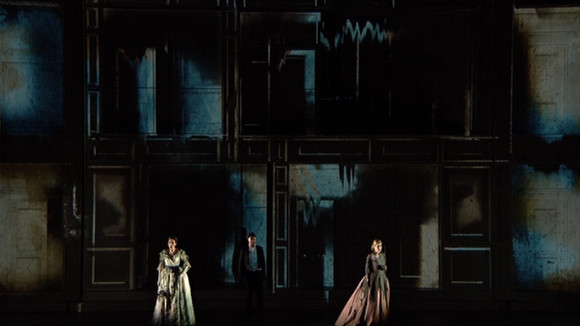 Kasper Holten’s Royal Opera House production of Don Giovanni, seen in cinemas, is now available on DVD and Blu-ray. It’s a visually and dramatically complex production so it’s probably as well that there’s plenty of explanatory material on the disks and in the booklet. Es Devlin’s set is a two storey structure that rotates and serves as a screen for a heavy use of video projections by Luke Halls. These start wth the 2065 names of the women Don Giovanni has seduced and seem to be mostly about what’s going on in Don Giovanni’s head. The sequence during Fin ch’han dal vino calda la testa is particularly spectacular.