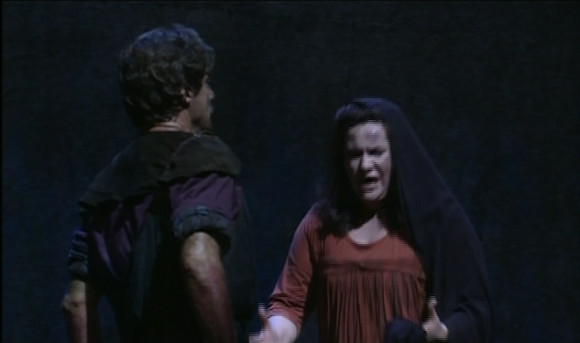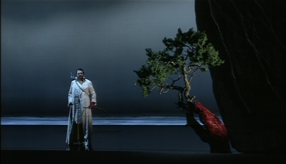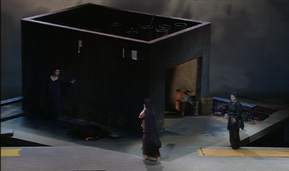 Video direction is by Brian Large. It’s typical. Lots of close ups and in the last act he seems to have got bored with the rather dark, static stage goings on and reaches into the video bag of tricks for split screen shots, superpositions and the like. Normally that drives me nuts but here, at times, it’s so dark that I have some sympathy. The 16:9 picture quality is just about OK. OK for a DVD of its time but not comparable to modern HD recordings. Also, for some reason it wouldn’t actually display full screen on my system and I ended up with it letterboxed and pillar boxed; whatever display settings I tried. The sound options are digitally reprocessed DTS 5.1 and the original stereo. The latter is much better and really quite good. The surround option is quite muddy. Subtitle options are English, French, Italian, Spanish and Chinese. There are no extras but the booklet contains a useful essay and a cued synopsis.