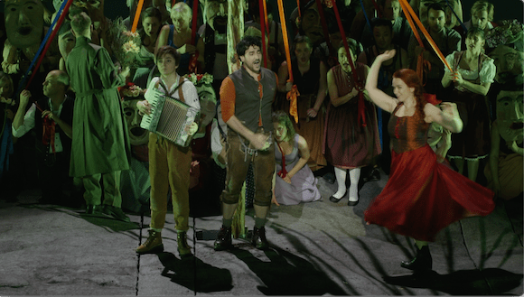 Video direction is by Tiziano Mancini and I think it’s a decent representation f what happens on stage though the projections rather get lost. It’s not an easy show to film. It’s busy and often dark which always causes issues. The sound (PCM stereo and DTS-HD) are fine and the picture on Blu-ray copes pretty well. The documentation is not very enlightening. There could usefully have been more about where and how this production departed from the book. There is, though, a full track listing. Subtitle options are Italian, English, German, Korean and Japanese.