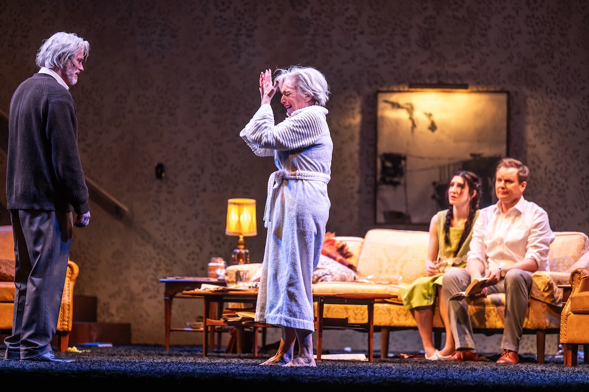 Edward Albee’s 1962 classic Who’s Afraid of Virginia Woolf? opened at Canadian Stage on Thursday evening in a production directed by Brendan Healy. It’s a long (not far short of 3.5 hours with two short intervals) and complex play; heavily dependent on quick-fire dialogue and with occasional outbreaks of absurdism. An older academic couple invite the “new man” and his wife back for drinks after a faculty party at a small New England college. George, a historian of modest distinction, is married to Martha, the daughter of the college president. The newcomers are Nick, a biologist, and his wife Honey.