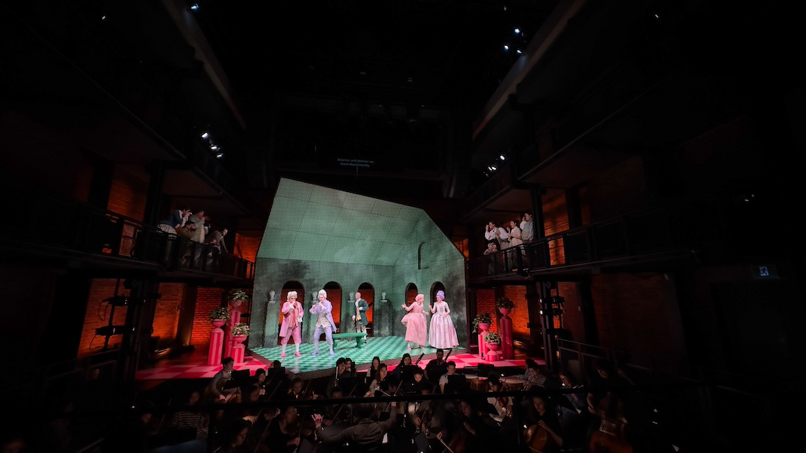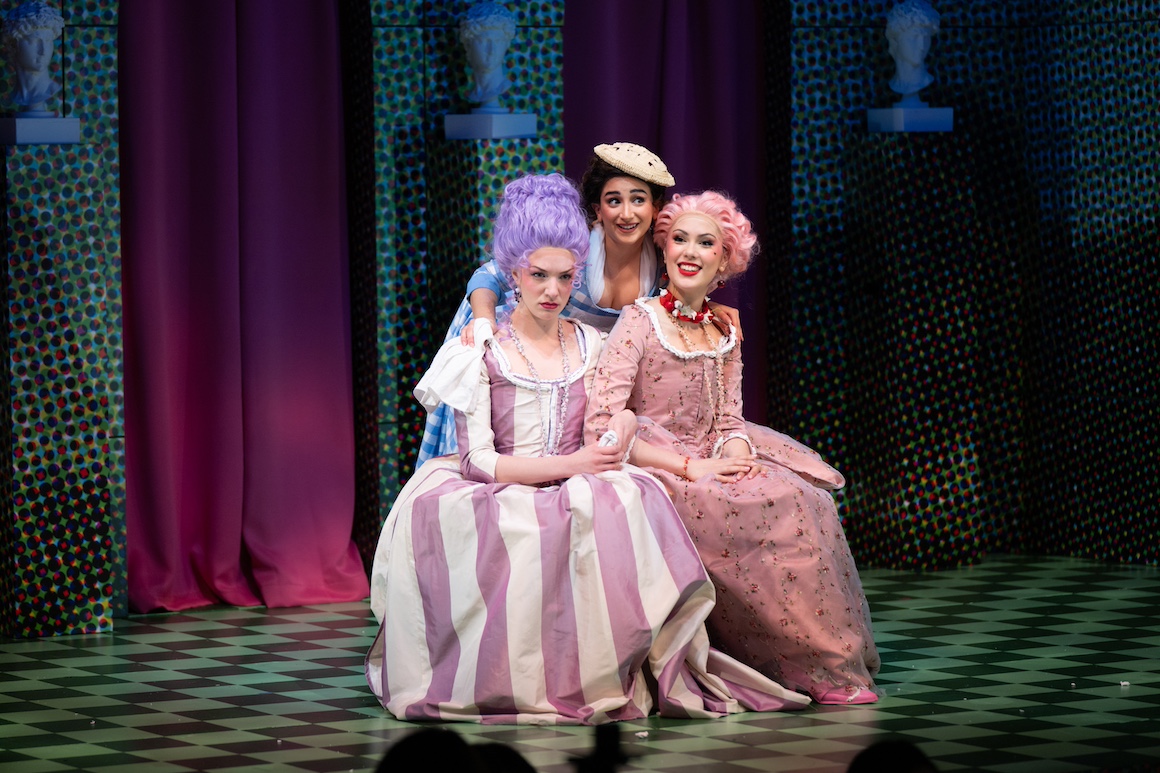 The spring production from UoT Opera is Mozart’s Così fan tutte and it’s playing at the Harbourfront Centre Theatre. Anna Theodosakios directs with some conceptual input from Michael Patrick Albano. The production is interesting and I think there are three layers to unpack. On the surface it’s a fairly straightforward 18th century setting with uniforms, wigs, elaborate dresses and so on but with a rather striking colour scheme; pinks and lilacs.