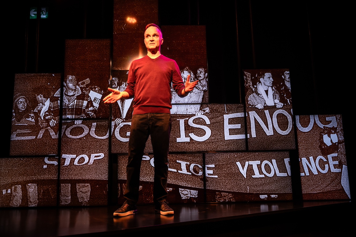 A Public Display of Affection is currently being presented by Studio180Theatre in the Studio at Crow’s Theatre. Jonathan Wilson plays himself in monodrama-documentary directed by MarkMcGrinder about Gay life in Toronto before, during and after AIDS.