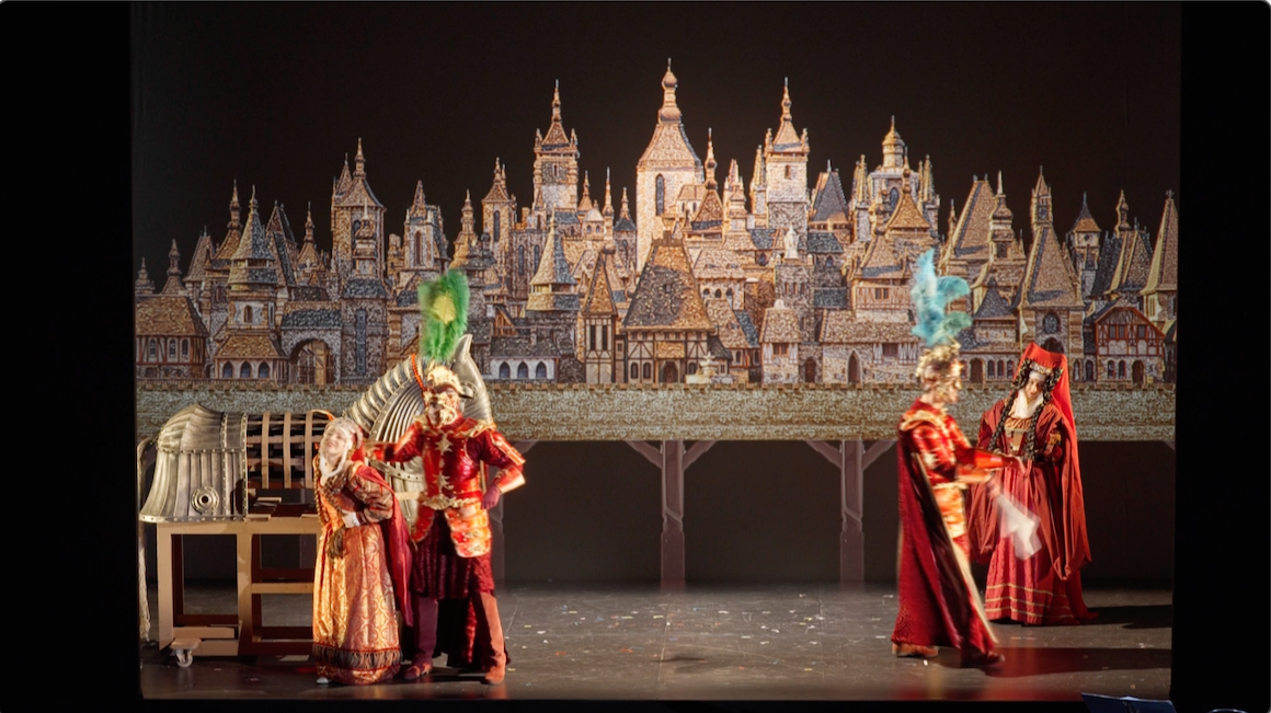 There was a production in Venice (Teatro Malibran) in 2024 and it’s now been released on video. It’s quite interesting. Director Fabio Ceresa has chosen to work with the pasticcio idea; i.e. that it’s really just a device for stringing arias together. So, we have the stage set up for a Sitzprobe with the singers in black. In general the recitatives play out there in front of a plain backdrop. Then for the arias the stage opens up to allow each aria to be performed in costume with sets. But there’s no attempt to achieve any kind of narrative or aesthetic consistency between arias. Each one is distinct.