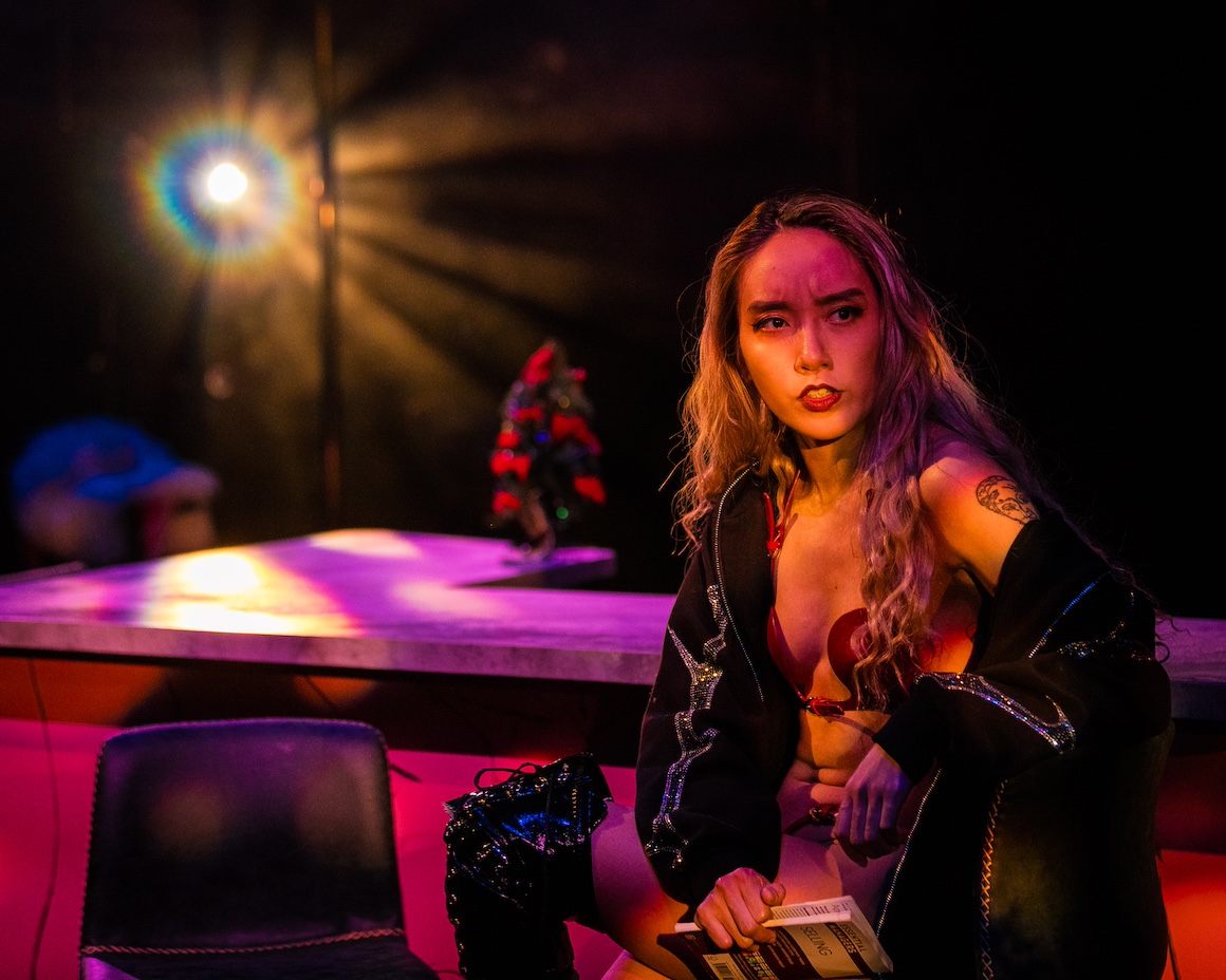 Never Walk Alone is much darker. Phan plays Honey (at least that’s her stage name); a stripper in a club in Montreal. It’s Christmas Eve which just makes the whole setting that bit more depressing. Between pole dances and encounters with unseen rather pathetic men; including her ex, we learn about Honey’s childhood with an alcoholic uncle who frequents strip clubs and a single mother with whom she rows constantly.