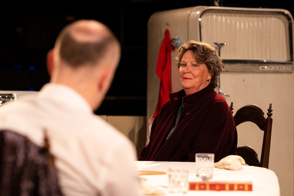 The Matchstick production though; directed by Jake Planinc, is rather good and probably makes as strong a case for the play as one could hope for. It’s played in the round with the audience surrounding a very 1950s living room/dining room/kitchen space designed with considerable attention to detail. The acting is strong. Andrew Musselman, as Jacob, oozes pent up rage and violence and portrays his characters bizarre mood swings convincingly. There’s a fine, restrained performance by Lou Campbell as Ben. I’d guess most intellectual kids who grew up in the 50s/60s/70s would see something of themselves in this performance. Shelley Thompson as Mary is the glue that holds the show, as well as her family, together. It’s a fine portrayal of an effective matriarch in a patriarchal world. Most of the comedy comes from Sharleen Kalayil as Minnie who is hilariously inappropriate. The young couple; Abby Weisbrot as Kathy and Sam Vigneault as Bill don’t have as much meat to get their teeth into but they are quietly effective. Sébastien Labelle makes the most of the non-speaking part of the stiff (in every sense) Harold.